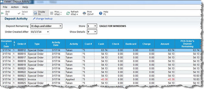 Limitations: Using this viewer and these features to identify and manage ‘stale’ orders is dependent on the practice of requiring deposits on Orders/Special Orders.