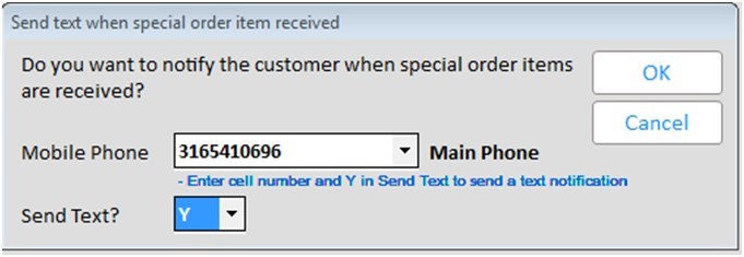 Note: If multiple special order items have been received for a customer order, only one text will be sent, and instead of showing the item’s description the text will show ‘Multiple Items Received’.