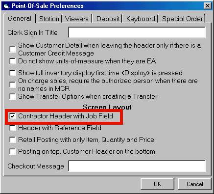 On the General tab, click the box next to "Contractor Header with Job Field," so that a checkmark displays in the box.