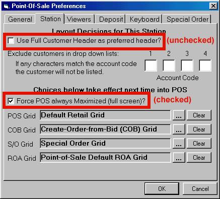 Click the box next to "Force POS Always Maximized (full screen)," so that a checkmark displays in the box.