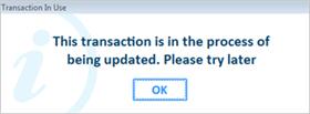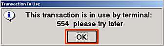 "This transaction is in use by terminal xxx. Please try later." (’xxx’ is a terminal number.)