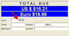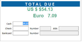 If the Change Due box displays, the amount of change displays in domestic currency if option 8826 is set to No, or in both currencies if option 8826 is set to Yes.