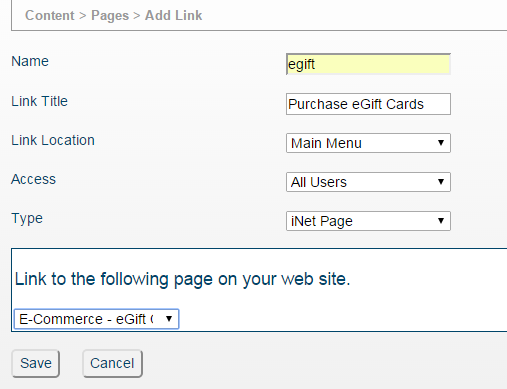 Link Title – This will appear as a menu link to the Purchase eGift Card Page