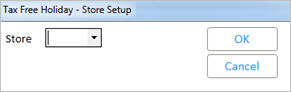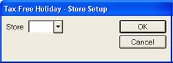 Select the store number, store group, or "All" stores participating in this category of the Tax Free Holiday. Then click OK.