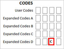 In Inventory Maintenance on the Codes tab, for each item in a category, set the User Code to the designated position/value. For example, you may decide that clothing items will have a value of C in the third position of Expanded Codes D, as shown below.