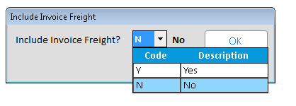the Include Invoice Freight pop-up window select Yes and click <Ok>.