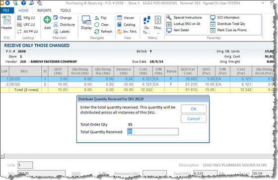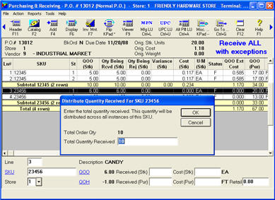 - Updates the DC's quantities on hand for the items received, and reduces the quantity on order in the individual stores accordingly.
