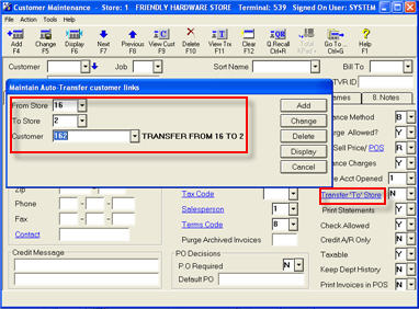 Click the "Transfer 'To' Store" hyperlink. The Maintain Transfer Customer Links dialog box displays.