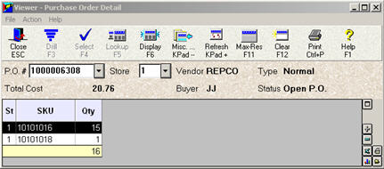 - Click View PO (F9) to open the PO Viewer. Locate the PO you want to copy, or click PO Archive to locate a PO as it existed before the receiving process had begun.