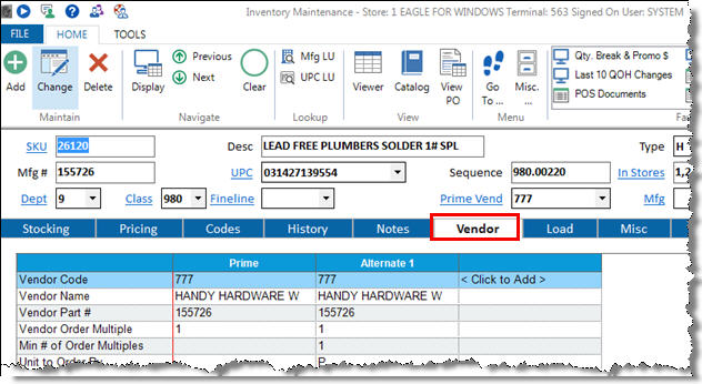 If you have several items to process, the most expedient method for updating these is the Inventory Import Tool, as it can update alternate vendors immediately.