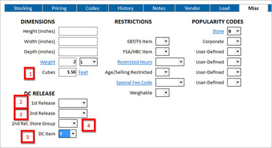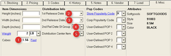 When setting up item records in Inventory Maintenance (IMU) to use with Buyer’s Purchasing, you must fill in certain fields on the Vendor tab and the Misc tab. These tabs hold data that tells the system if the item is stocked in the distribution center (DC) or not, and what are the vendor order multiples if ordered direct or split through the DC.