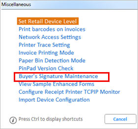 Use the following setup procedure if you want to include the buyer’s signature on purchase orders laser-printed or faxed from the Purchase Order Format Report (RPO). This procedure assumes that you already have a Signature Capture device up and running. Note that the Licensing Department or Eagle Advice Line must activate the flag "Print and fax buyer signature on purchase orders."