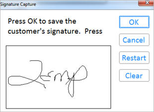 The signature has been captured. From this point on, whenever you print or fax a PO created by that buyer (his/her initials are in the Buyer's ID field in the Purchasing window), his/her signature prints using the signature stored in Device Configuration. If the buyer on the PO does not have a signature on file, the system uses the buyer's signature you designated in the option "Default buyer signature when faxing or printing from RPO."