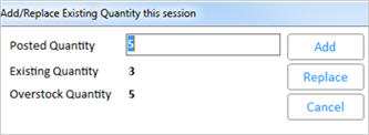 If you enter a quantity that is greater than the available overstock quantity, a dialog asks you whether you want to post only the overstock amount, or the quantity you entered.