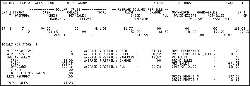 Average Dollars per Sale— By day and in the Totals section of the report. The average dollar sales amount by category (cash, check, etc.). Calculated as total sales amount divided by number of transactions.
