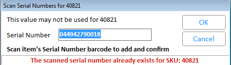 Clicking <Cancel> on the Scan Serial Numbers window