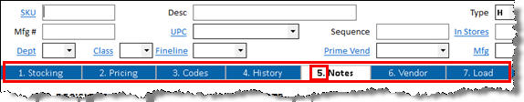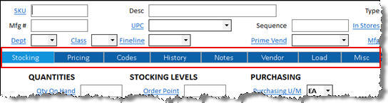 Below are examples of Inventory Maintenance, with and without Visible Tabs displaying, respectively.