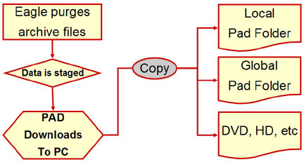 Once the PAD is on the PC, you need to copy it to the Local PAD folder and Global PAD folder if necessary. It is extremely important to make a back up of the data, as the purge process permanently removes the data from your Eagle system.