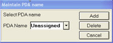 Click Misc again, and select Maintain PDA Name (on PDA). In the dialog that displays, in the drop-down list, select the PDA name you just set up. Then click OK.