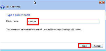 Name the printer E4WFAX, and click Next.