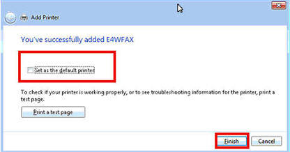 Un-select "Set as the default printer," and click Finish.
