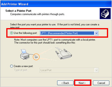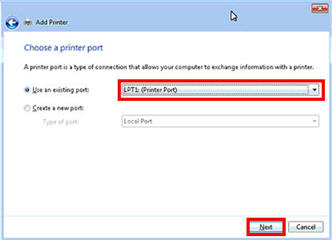 Use the existing port of LPT1. Click Next.