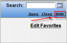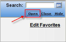 You can use the Open, Close, Hide, and Show links (located below the Search field).