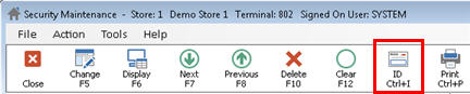 - Display the Security Maintenance window.