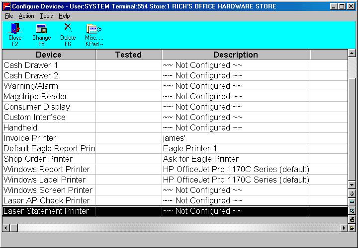 Use this procedure to set up the following devices that are attached to your Epicor Eagle™ for Windows terminals: