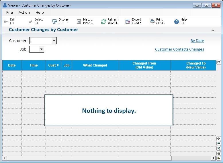 When using the Customer Contact Change Log Viewer by Customer, you can view all adds, changes, and deletions for that customer for all of its contacts. When using the Customer Contacts Change Log Viewer by Date, you can view change history for all Contacts across all customer/jobs within a specific date range. And you can limit your query to just the changes to a specific field by selecting that field in the Fields dropdown.