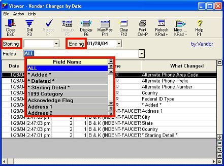 Use the following procedure to view the Vendor Maintenance Changes Viewer, which displays any changes that were made in Vendor Maintenance, including any vendors added, changed, or deleted.