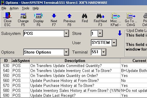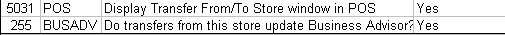 (Business Advisor users only) From the Subsystem drop-down list, select BUSADV and then click Display. Locate the option: Do transfers from this store update Business Advisor?
