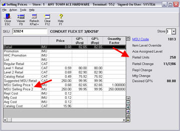 In IPC, there are new columns for New MSU Price and New MSU Retail Units. There are also two Ace MSU columns ("Ace MSU Code?" and "Accept Ace MSU?"), allowing you to see all of the items that accept MSU downloads.