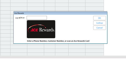 At the initial Ace Rewards prompt for customer loyalty dialog, in the Loy #/Ph # field enter one of the following value and click Lookup: