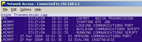 A message displays once the transmission is complete. To verify the transmission status or to troubleshoot error messages, view the Async Transmission Log. From the Eagle Browser, type ASYMSG and press Enter to display the log. Look for entries similar to the following (you may need to press <Next Item> to locate entries for the current day).
