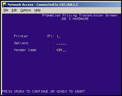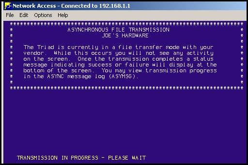 Your system dials Orgill Brothers and the promotion data is transmitted. When the transmission is complete, a message displays on the screen. For more information about monitoring the transmission or troubleshooting errors, see the section, Async Log and Troubleshooting.