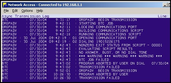 You may need to press Next (F7) to get to the correct section of the log. The following is an example of the log with messages for a failed transmission: