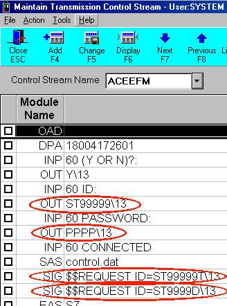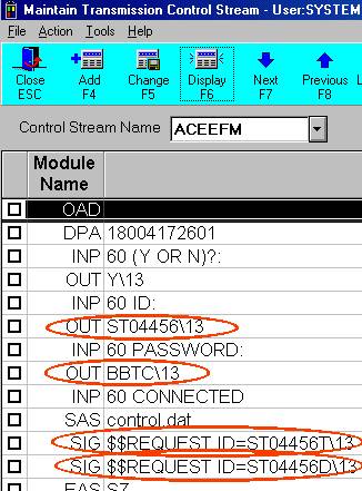 In the Maintain Transmission Control Stream window, click the arrow in the Control Stream Name box and select ACEEFM from the drop-down list.
