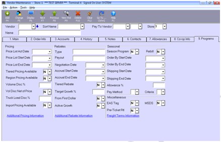 – Vendor Report Card on System = Y
