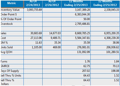 - GMROI – Turns * GM%