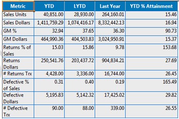 - GM% – GM% from Sales Detail for desired time period