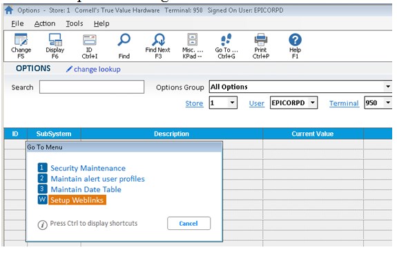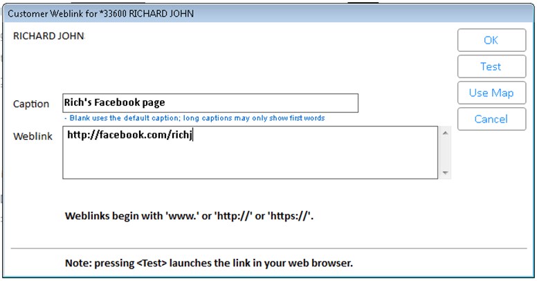 You can add and maintain the Weblinks in their applicable viewer. For example, in the Inventory Viewer use the Misc Menu choice “Add Weblink" to add a weblink for the highlighted item, or use “Maintain Item Weblinks” to access the Item Weblink Maintenance Viewer where you can see Weblinks for all items. The same functionality is available in the Customer and Vendor Viewers.