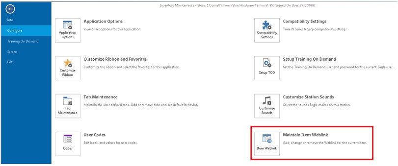 From IMU, with the desired SKU displayed go to FILE à Configure à Maintain Item Weblinks. The Item Weblink Maintenance viewer will display.