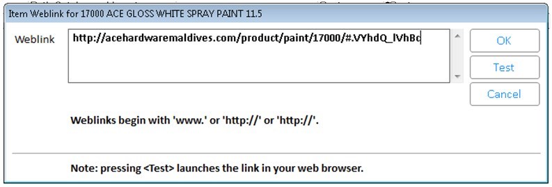 This describes how to link specific items to specific URL’s. Item specific URL’s are setup one item at a time. An item can only have one specific weblink at a time.