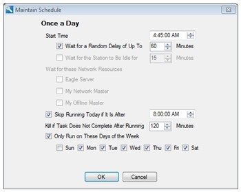 eScheduler does not require a user to be logged onto the Windows machine, and currently supports the Offline refresh (download) for Offline POS data files only. If POS stations are not left powered on at night, Epicor suggests using the Offline Master / Client model using at least one Master per location which is left on at night to process the files for the local Clients. See the Eagle for Windows online help topic entitled “Standards for Master/Client Setup” to configure this model, which also lowers the nightly bandwidth requirements of each remote location.