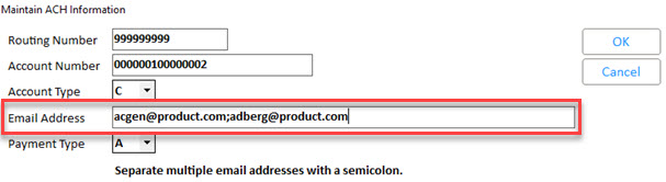Note: The ACH Bank Code cannot be the default bank code entered in ACON.