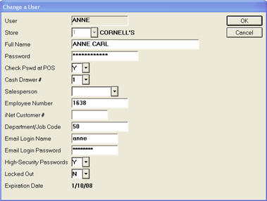 Select the appropriate store, and click OK. Then select the appropriate user and click OK. The Change a User dialog displays.