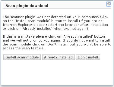 Once this is installed, click on the Scanning Icon in Webdocs to launch the Scanning tool, you may be prompted with the message below.