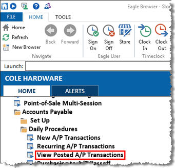 From the Eagle Browser, click Accounts Payable.