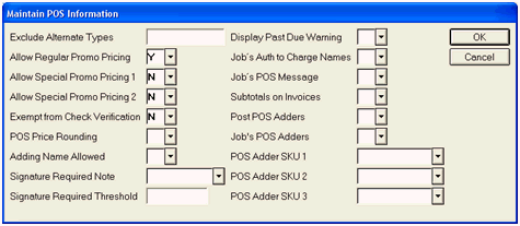 Maintain POS fields (On the MCR Main tab, click POS): All fields shown below except 2nd through 4th fields.